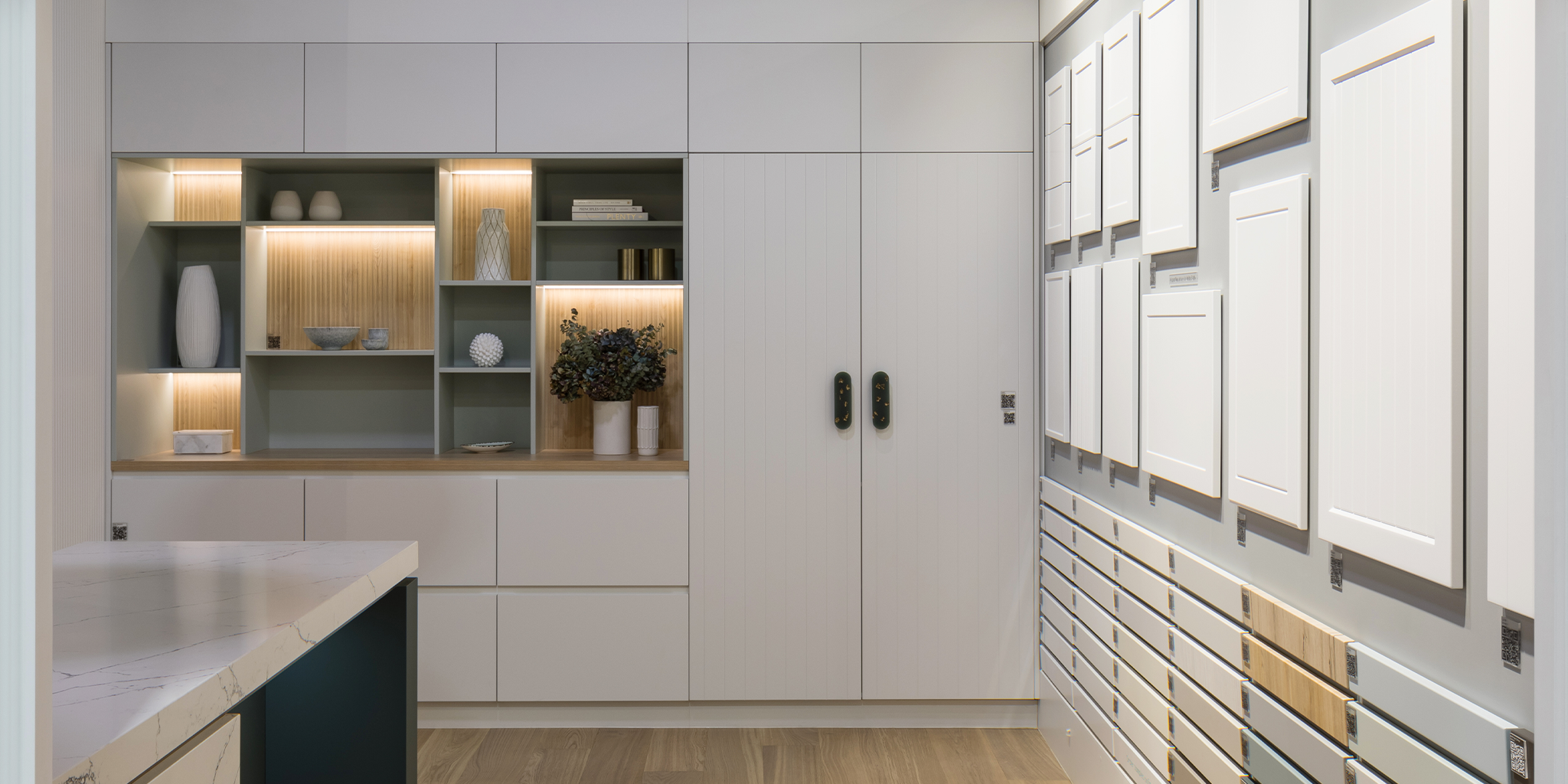 Designed primarily to help architects and designers work with their clients, the showroom features top selling door profiles, the entire thermoform vinyl colour range and large format doors and drawers to show what's possible.