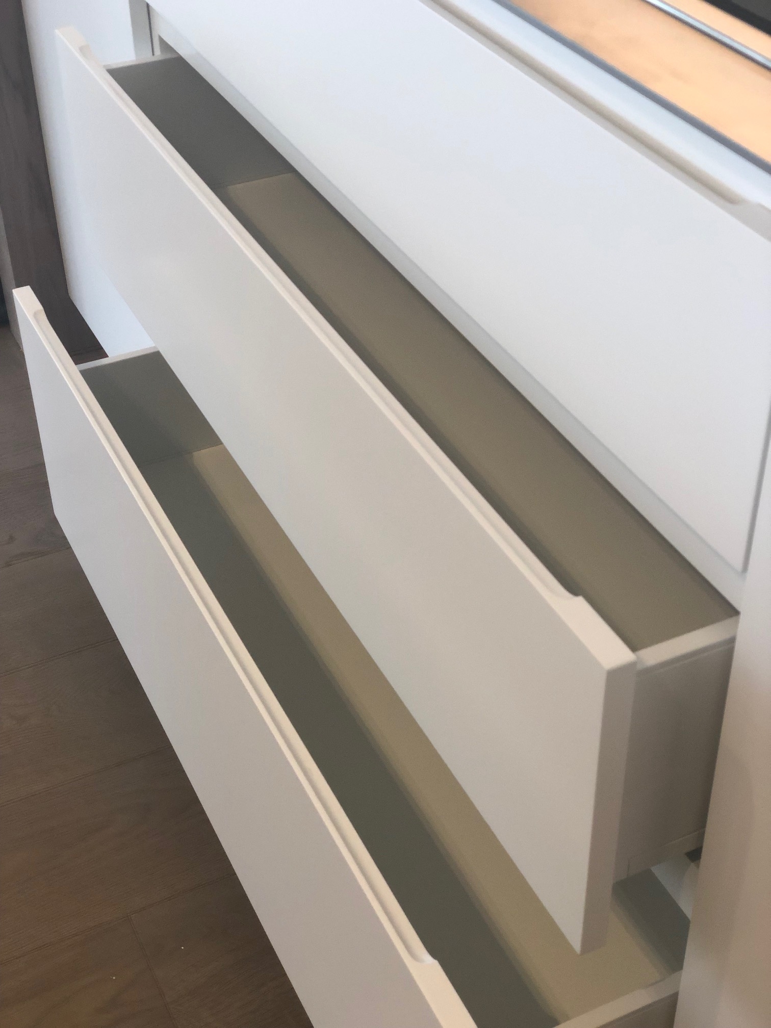 Given hidden handles are so popular, Dezignatek has introduced a scallop handle which can be used with the clean lines of the Milan Square profile.