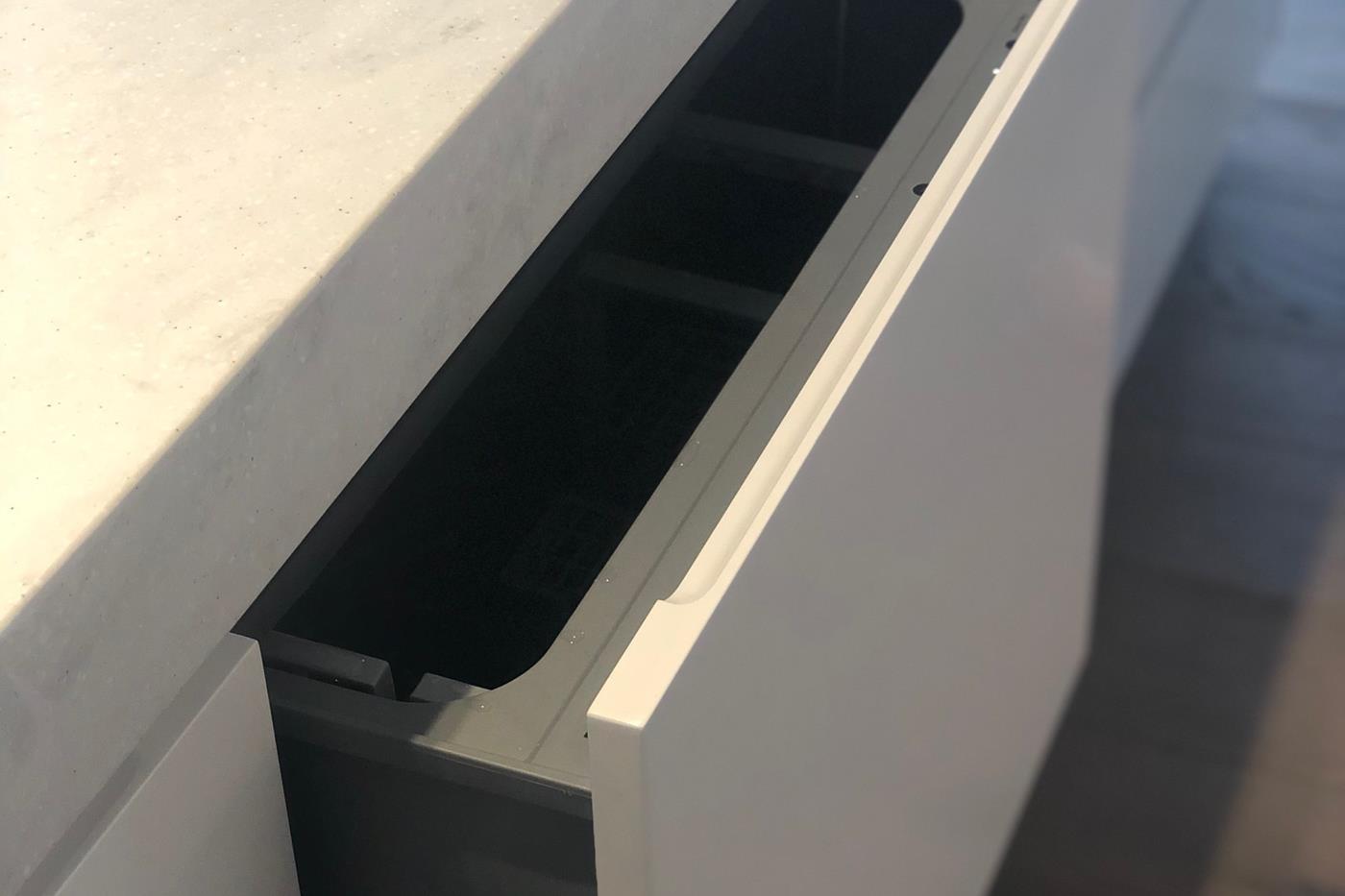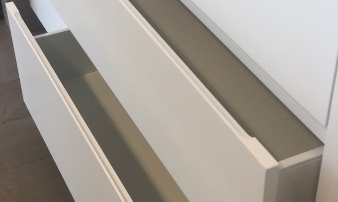 Given hidden handles are so popular, Dezignatek has introduced a scallop handle which can be used with the clean lines of the Milan Square profile.