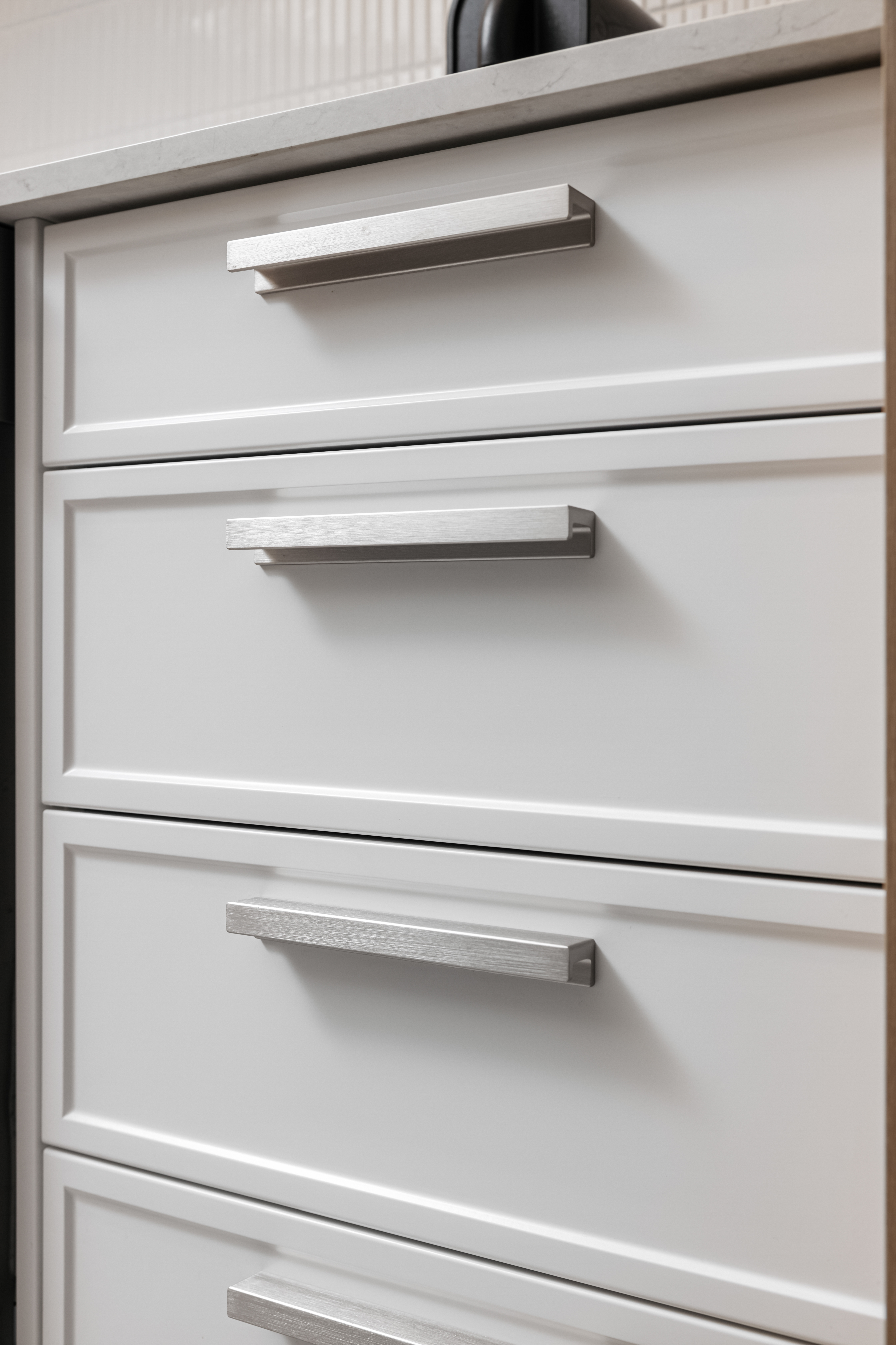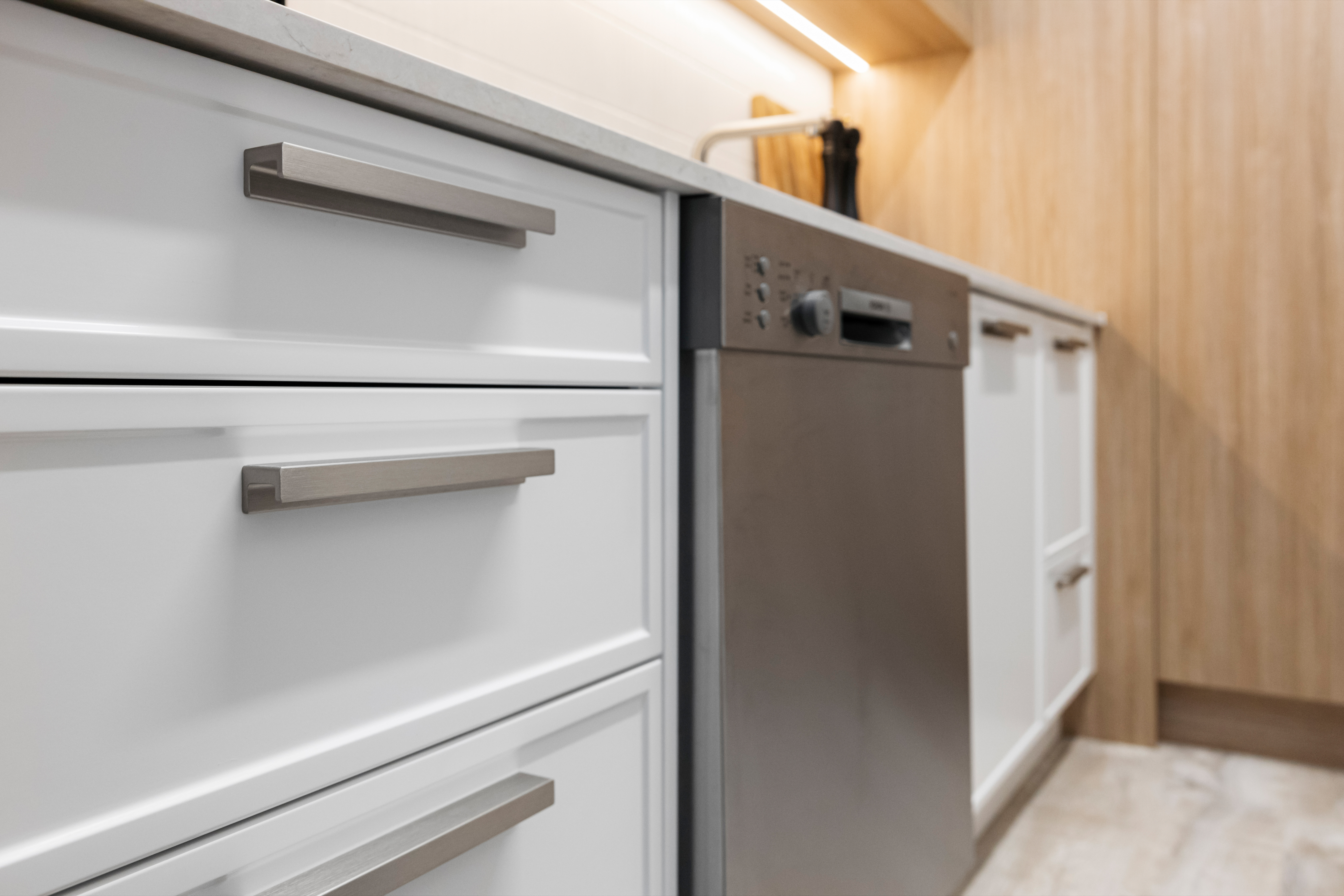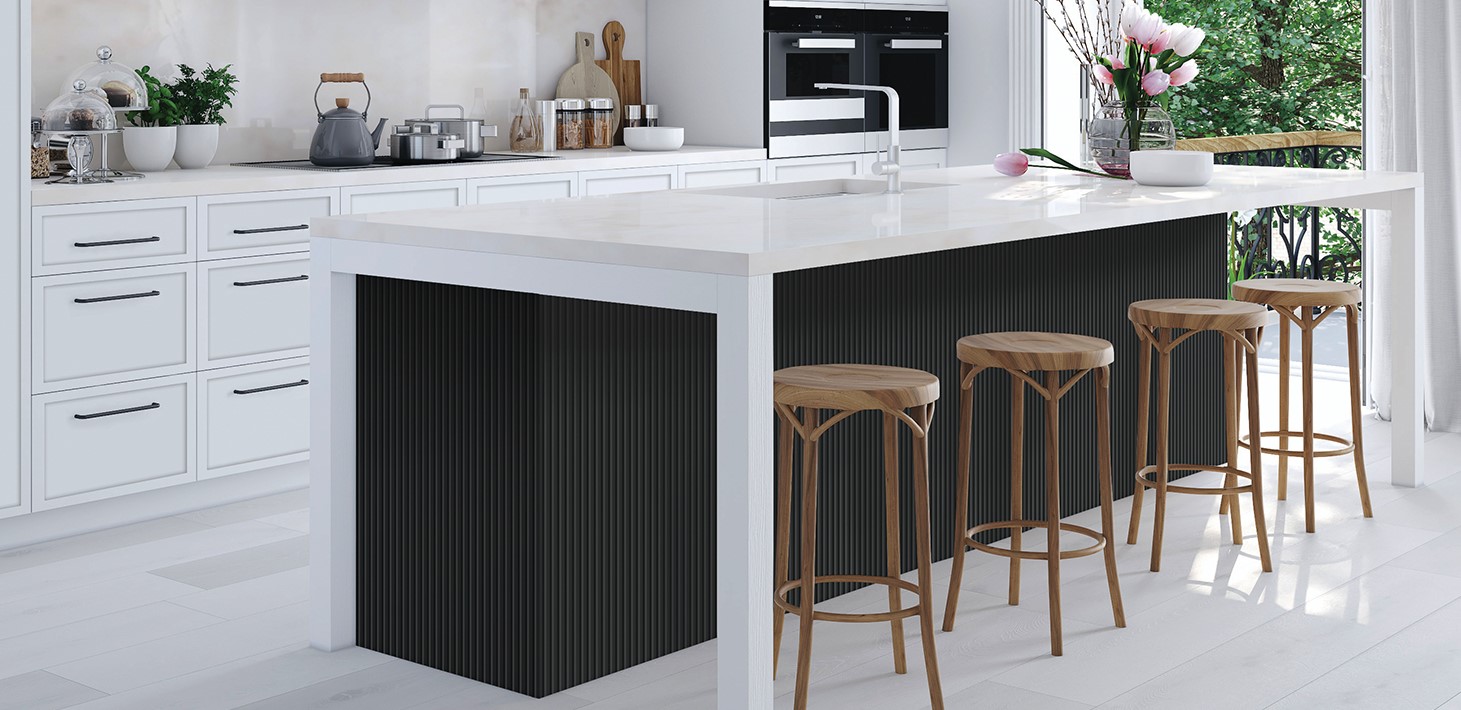 Fluted profiles such as the new Prague door look amazing for both kitchen and bathroom cabinetry and can also be used as a wall panel with a maximum size of 2400 mm high and 1200mm wide. The textural interest of a 3D door creates the wow factor and can be used to create a central focal point for the room. Grooves can be positioned horizontally if desired, by reversing the height and width dimensions. Please be aware that grooves may not always start from the centre of the door and the flat section at the edge will vary from 9-25mm depending on the door size. The distance across the top of one groove to the next is 19mm.